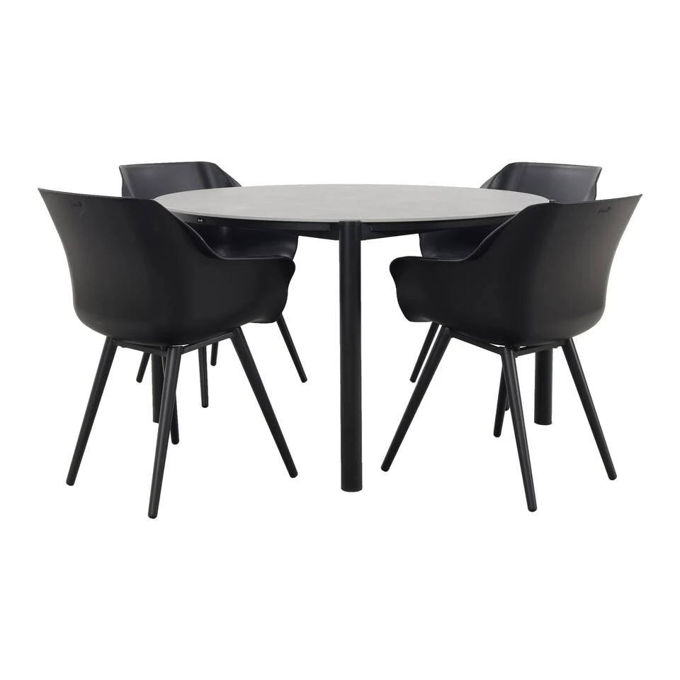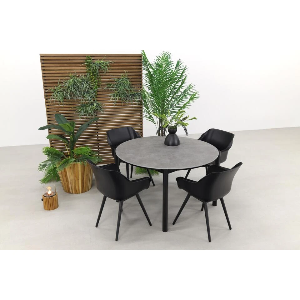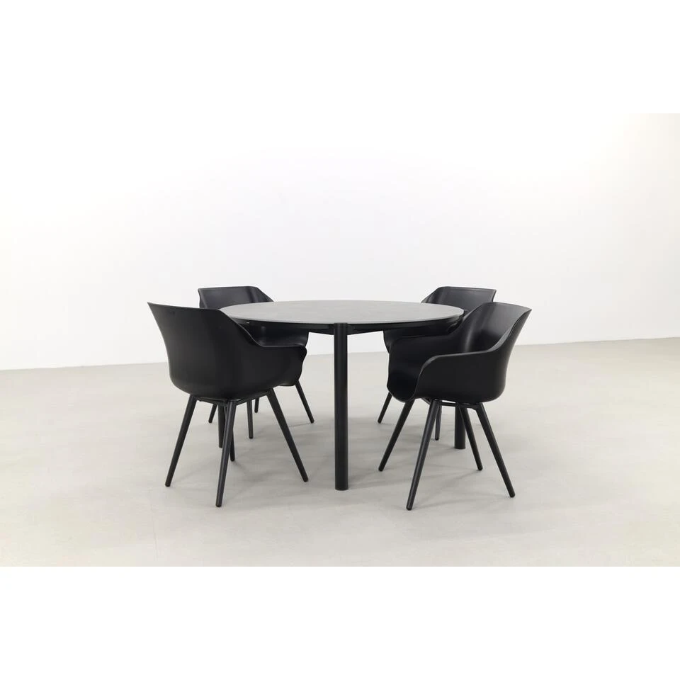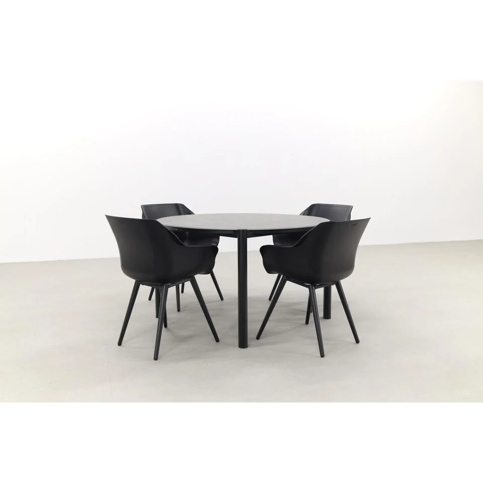 Moderne tuinset met een chique uitstraling. De Arezzo ronde tuintafel heeft een stijlvol frame van aluminium met een zwarte coating. Op dit onderstel rust het ceramic tafelblad. De ronde vormgeving van de Arezzo tuintafel geeft een unieke uitstraling aan je terras, helemaal in combinatie met de Hartman Sophie tuinstoelen. Deze hippe tuinstoelen maken de set écht compleet. De voorgevormde zitkuip geven je rug optimale ondersteuning. Een lange avond borrelen of dineren is dan ook geen probleem.