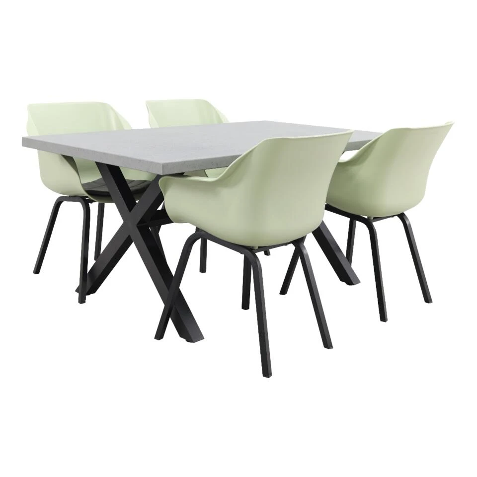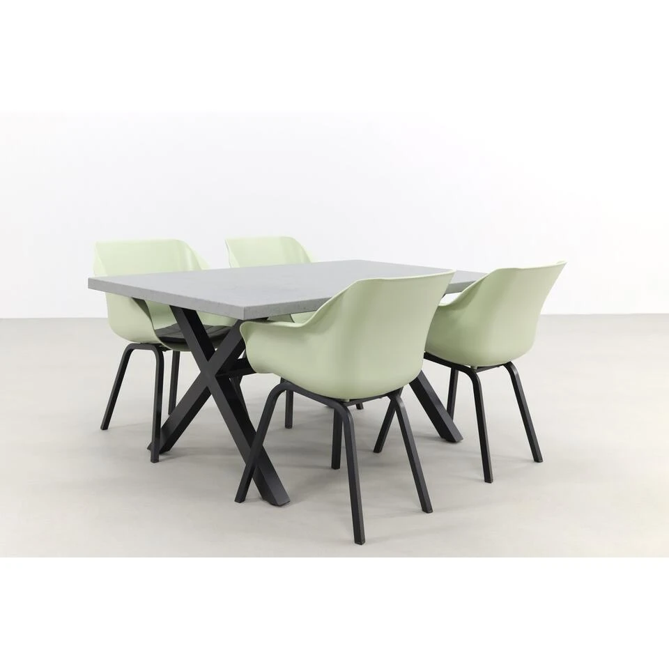 Wil jij gezellig barbecueën met vrienden of genieten van een romantisch diner met je partner? Dan is de Hartman Sophie tuinset zeker een aanrader. Deze 5-delige tuinset heeft een trendy uitstraling en past in elke tuin. Combineer de tuinset met vrolijke bloemen of stijlvolle potten voor een sfeervolle uitstraling. De Verona betonlook tafel biedt met zijn lengte van 160 cm. plaats aan 4 personen. Het tafelblad van de Verona tafel heeft een stoere betonlook en is bevestigd op een stevige, industriële X poot. De Hartman Sophie tuinset is eenvoudig online te bestellen en wordt gratis bij je thuisbezorgd.