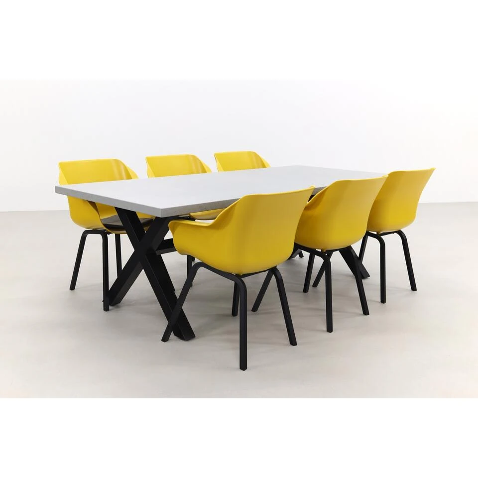 Wil jij gezellig barbecueën met vrienden of genieten van een diner met je gezin? Dan is de Hartman Sophie tuinset zeker een aanrader. Deze 7-delige tuinset heeft een trendy uitstraling en past in elke tuin. Combineer de tuinset met vrolijke bloemen of een Cosiscoop voor een sfeervolle uitstraling. De Verona betonlook tafel biedt met zijn lengte van 220 cm. plaats aan 6 personen. Het tafelblad van de Verona tafel heeft een stoere betonlook en is bevestigd op een stevige, industriële X poot. De Hartman Sophie tuinset is eenvoudig online te bestellen en wordt bij je thuisbezorgd.