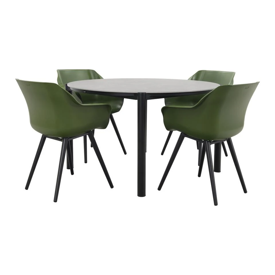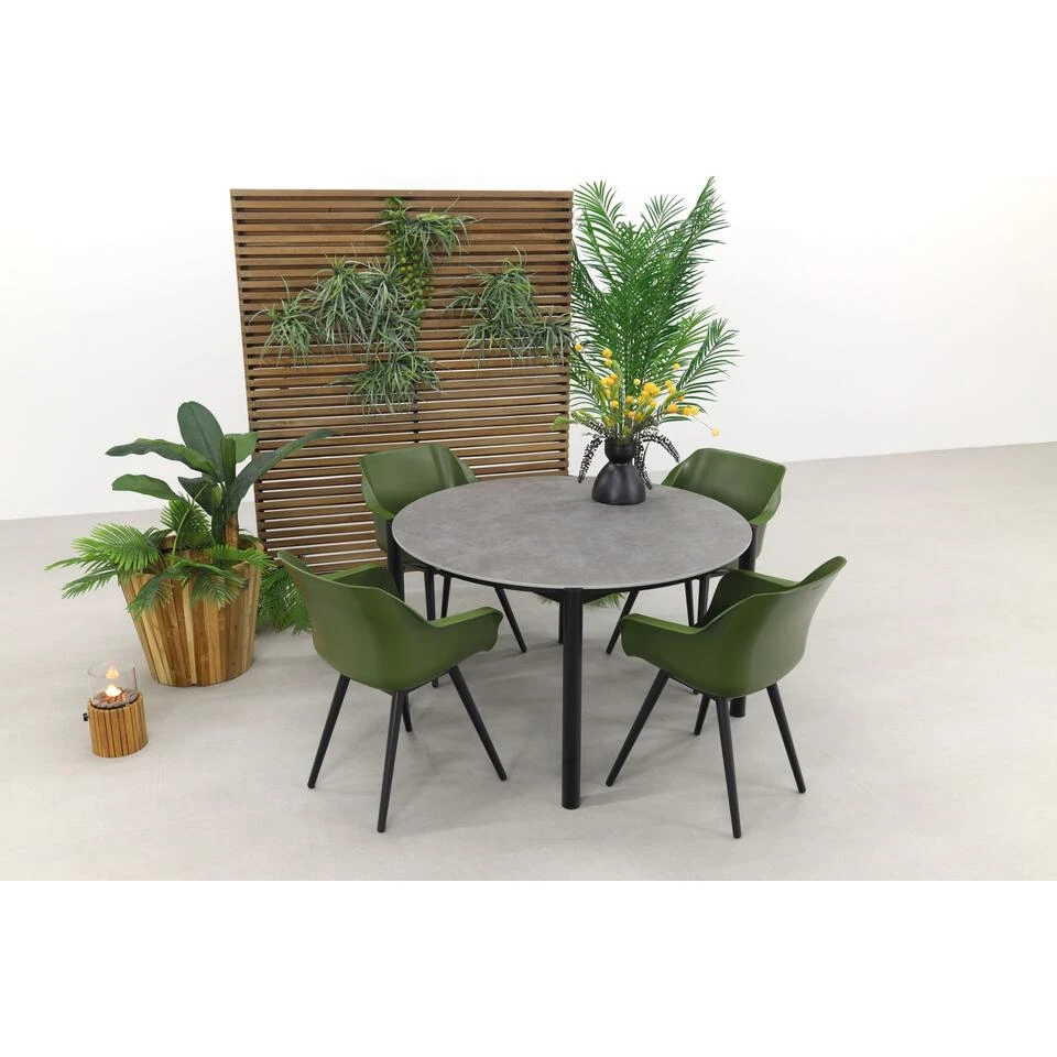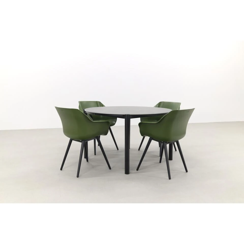 Moderne tuinset met een chique uitstraling. De Arezzo ronde tuintafel heeft een stijlvol frame van aluminium met een zwarte coating. Op dit onderstel rust het ceramic tafelblad. De ronde vormgeving van de Arezzo tuintafel geeft een unieke uitstraling aan je terras, helemaal in combinatie met de Hartman Sophie tuinstoelen. Deze hippe tuinstoelen maken de set écht compleet. De voorgevormde zitkuip geven je rug optimale ondersteuning. Een lange avond borrelen of dineren is dan ook geen probleem.