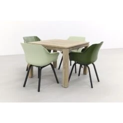Op zoek naar een trendy tuinset met een gezellige sfeer? Dan is deze Sophie/Bella tuinset helemaal perfect voor jou! De Sophie Studio tuinstoelen zijn in twee verschillende kleuren toegevoegd aan deze tuinset. Zo krijg je twee gele stoelen en 4 groene stoelen. Hierdoor wordt er direct een speels effect gecreëerd aan jouw tuinset en voldoet hij helemaal aan de laatste tuintrends! De Sophie tuinstoelen zitten ook nog eens heel erg comfortabel door de voorgevormde zit kuip. Voeg daar de Bella tuintafel aan toe en je plaatje is compleet. Het onderstel van de Bella tuintafel heeft slanke, stevige poten. De poten hebben een ronde afwerking net als deze Sophie Studio stoelen, zo past het mooi bij elkaar! De tafel heeft een tafelblad van teakhout in kleinere latten. Door de warme uitstraling van deze set schuif je maar al te graag aan! Zie jij jezelf al zitten op deze gekleurde stoelen? Bestel dan direct online!