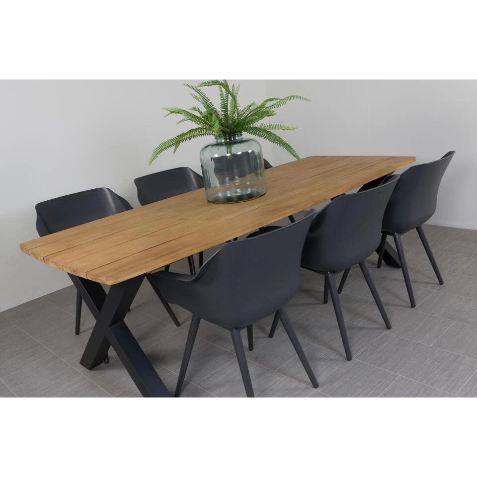 Deze tuinset bestaat uit 6 Hartman Sophie Studio tuinstoelen en de Sefa tuintafel. De Sefa tuintafel heeft een lengte van 240 cm. waardoor je genoeg ruimte hebt voor 6 personen. De tuinset kenmerkt zich door zijn gekruiste tafelpoten en zijn stoere uitstraling. De comfortabele Hartman Sophie tuinstoelen matchen perfect bij de tuintafel en geven je tuin een chique uitstraling. Creëer een gezellige plek op je terras met deze prachtige tuinset.