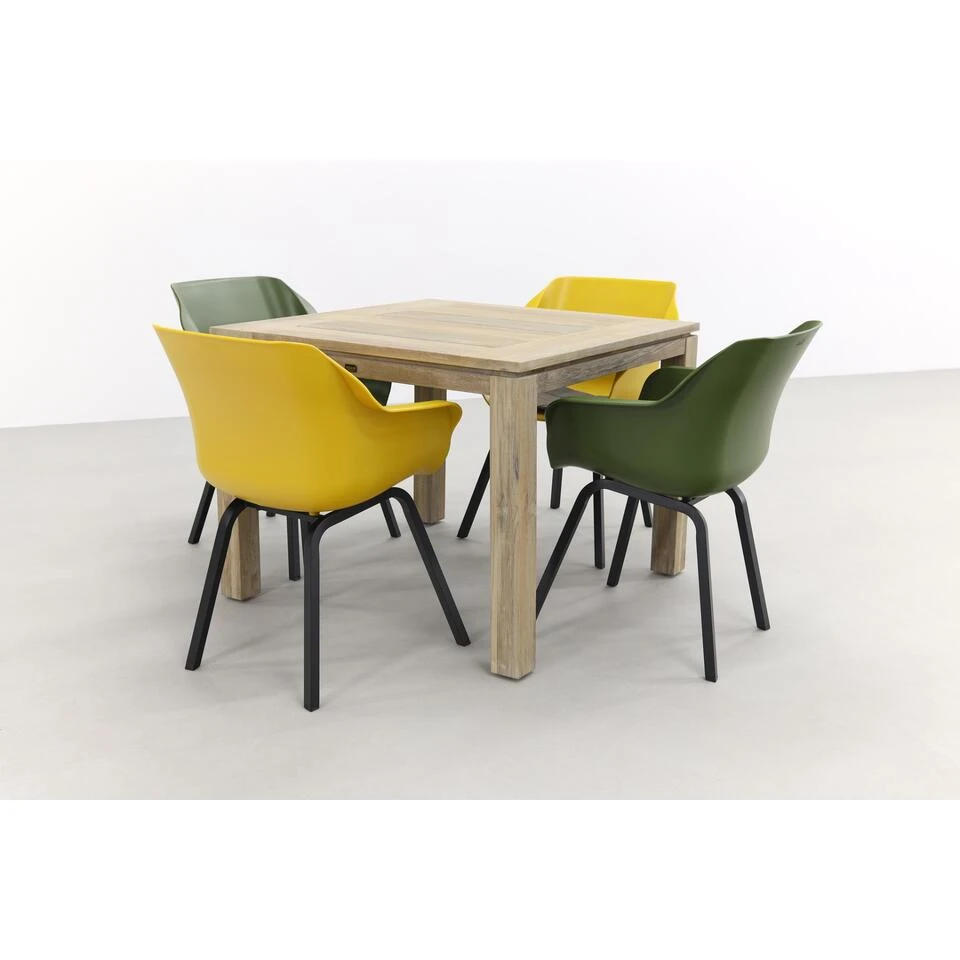 Op zoek naar een compacte tuinset met een gezellige sfeer? Dan zit je met deze Sophie Element tuinstoelen en Rome tuintafel helemaal goed! De Sophie Element zijn toegevoegd in twee verschillende kleuren, waardoor je een extra trendy look krijgt. De kleuren zijn Curry Yellow en Moss Green. Door deze vrolijke kleuren weet je zeker dat je de gezelligheid naar jouw tuin toe haalt! De Rome tuintafel is een massieve tuintafel van teakhout. Door de grey wash op deze tafel krijgt deze tuinset echt een stoer tintje. De tafel is lekker compact waardoor je deze tuinset ook kwijt kan in een kleinere tuin, ideaal! Zie jij jezelf al zitten? Bestel dan direct online!