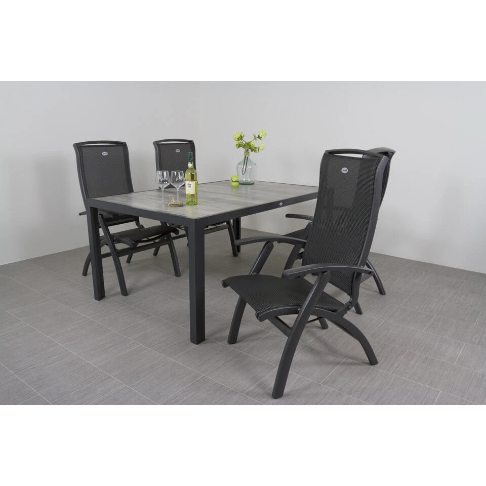 Deze Verstelbare Hartman tuinset bestaat uit 4 Da Vinci standenstoelen en de Hartman Tanger tuintafel. Door het fraaie design zal de tuinset op elk terras tot zijn recht komen. Lekker koffie drinken of een barbecue met famillie of vrienden. Het kan allemaal aan deze Hartman tuinset.